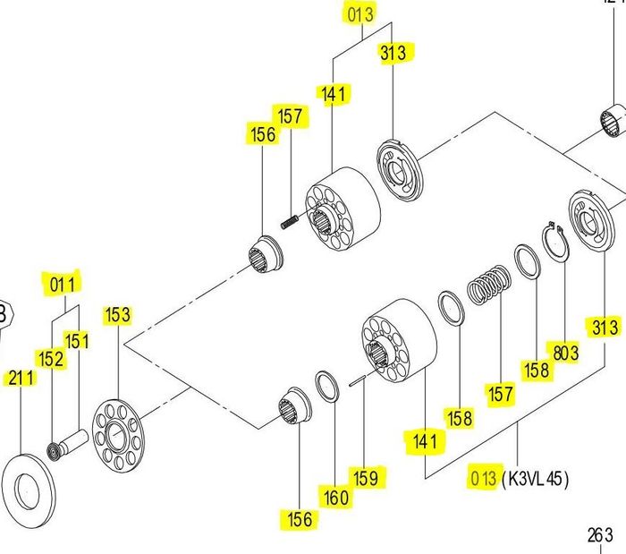RK - Rotary Kit - consisting of - 1 x 011 Piston/Shoe Assembly Set of 9, 1 x 013 Cylinder/Valve Plate Assembly LH, 1 x 154 Set Plate, 1 x 156 Spherical Bush, 9 x 157 Cylinder Spring